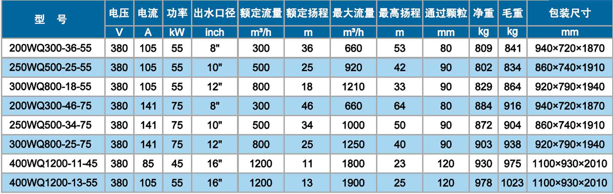 WQ系列双流道潜水排污泵结合了国内外同类优秀产品,经过PCAD软件优化设计而成,在水力模型、结构、密封、冷却和保护控制等方面进行了综合优化和创新设计。叶轮为双流道设计,有较大的进口和出口宽度,无堵塞性能好,高效节能,安全可靠,寿命长。